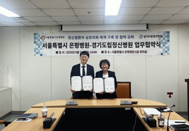 [°Ç°­] ¼­¿ï½Ã ÀºÆòº´¿ø, Á¤½ÅÁúȯÀÚ »óÈ£ÀÇ·Ú Ã¼°è ±¸Ãà Çù·Â °­È­ À§ÇÑ ¾÷¹«Çù¾àü°á |2025. 04.25