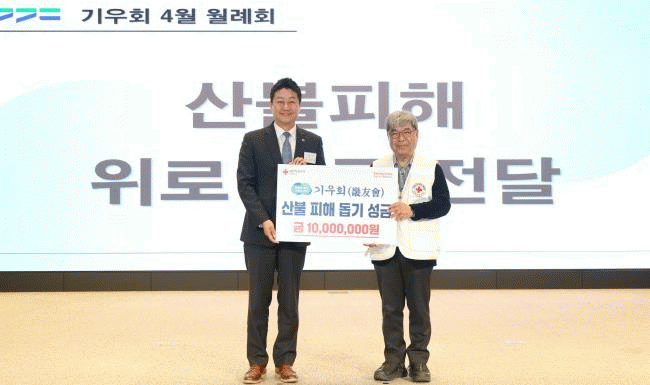 [NWS¹æ¼Û=Çѽ¸ñ ±âÀÚ]±èÁø°æ °æ±âµµÀÇȸ ÀÇÀå(´õ¹ÎÁÖ¡¤½ÃÈï3)ÀÌ 25ÀÏ °æ±âµµ°æÁ¦°úÇÐÁøÈï¿ø¿¡¼­ ¿­¸° °æ±âµµ ±â¿ìȸ 4¿ù ¿ù·Êȸ¿¡ Âü¼®, ±â¿ìȸ¸¦ ´ëÇ¥ÇØ ¿µ³²Áö¿ª »êºÒ ÇÇÇØ º¹±¸¸¦ À§ÇÑ ¼º±ÝÀ» Àü´ÞÇß´Ù. ±â¿ìȸ´Â °æ±âÁö¿ª °ø°ø±â°ü¡¦