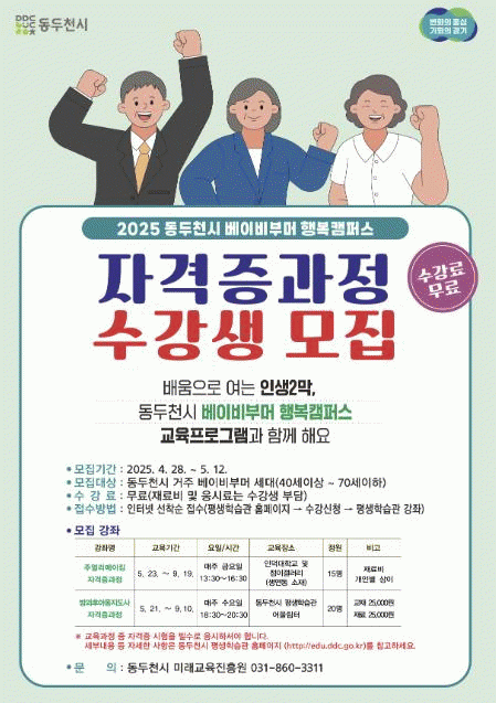 [»çȸ] "º£À̺ñºÎ¸Ó Àλý2¸· Áغñ µ½´Â´Ù" µ¿µÎõ½Ã, '2025 º£À̺ñºÎ¸Ó ÇູķÆÛ½º ÀÚ°ÝÁõ °úÁ¤' ¿î¿µ |2025. 04.25