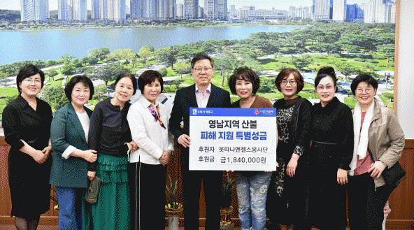 [NWS¹æ¼Û=Çѽ¸ñ ±âÀÚ]Áö³­ 24ÀÏ, Áö¿ª ³» ³ª´® ½Çõ¿¡ ¾ÕÀå¼­°í ÀÖ´Â ¿ôµû³ª¿£Á©½ººÀ»ç´ÜÀÌ ÃÖ±Ù ¹ß»ýÇÑ ¿µ³²Áö¿ª »êºÒ ÇÇÇØ ÁֹεéÀ» µ½±â À§ÇØ 184¸¸ ¿øÀÇ À§¹®±ÝÀ» Àü´ÞÇÏ¸ç µû¶æÇÑ ¿¬´ëÀÇ ¸¶À½À» ÀüÇß´Ù. À̹ø À§¹®±ÝÀº ¿ôµû³ª¿£Á©¡¦
