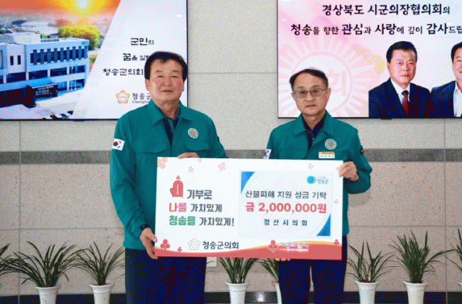 [NWS¹æ¼Û=Çѽ¸ñ ±âÀÚ]°æ»ê½ÃÀÇȸ´Â ÃÖ±Ù °æºÏ Áö¿ª¿¡¼­ ¹ß»ýÇÑ »êºÒ·Î Å« ÇÇÇØ¸¦ ÀÔÀº ÁֹεéÀ» µ½±â À§ÇØ ÃÑ 200¸¸ ¿øÀÇ ¼º±ÝÀ» ¸¶·ÃÇß´Ù. 4¿ù 24ÀÏ Ã»¼Û±ºÀÇȸ¸¦ Á÷Á¢ ¹æ¹®ÇØ 100¸¸ ¿øÀÇ ¼º±ÝÀ» Àü´ÞÇßÀ¸¸ç, ½Ã¡¤±ºÀÇȸÀÇÀåÇùÀÇȸ¸¦¡¦