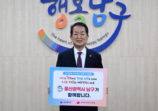 [NWS¹æ¼Û=Çѽ¸ñ ±âÀÚ] ¿ï»ê ³²±¸´Â 24ÀÏ ¡®Àα¸ ¹®Á¦ ÀÎ½Ä °³¼±À» À§ÇÑ ¸±·¹ÀÌ Ä·ÆäÀΡ¯¿¡ ¼­µ¿¿í ³²±¸Ã»ÀåÀÌ Âü¿©Çß´Ù°í ¹àÇû´Ù. À̹ø Ä·ÆäÀÎÀº º¸°Çº¹ÁöºÎ¿Í Çѱ¹º¸°Çº¹ÁöÀÎÀç¿øÀÌ °øµ¿ ÁÖ°üÇϸç, ÀúÃâ»ý°ú °í·ÉÈ­·Î ÀÎÇÑ Àα¸ °¨¼Ò¡¦