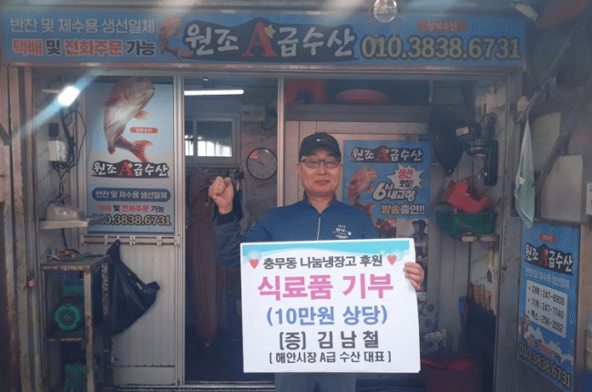 [NWS¹æ¼Û=Çѽ¸ñ ±âÀÚ]ºÎ»ê ¼­±¸ Ãæ¹«µ¿ ±è³²Ã¶ ´ÔÀº Áö³­ 23ÀÏ ³ª´® ³ÃÀå°í¿¡ ½Ä·áǰ(10¸¸ ¿ø »ó´ç)À» º¸³»¿Í ±âºÎÀÚ 152È£·Î ¼±Á¤µÇ¸é¼­ Áö¼ÓÀûÀÎ ±âºÎȰµ¿À» ÀÌ¾î °¡°í ÀÖ´Ù. ±è³²Ã¶ ´ëÇ¥´Â ¡°»ýȰÀÌ ¾î·Á¿î ÀÌ¿ô¿¡°Ô ½Ä·áǰÀ» ³ª´©¾î¡¦