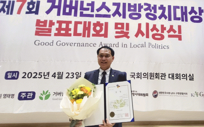 [Áö¿ªÁ¤Ä¡] ±è¿µ¼± ±¤»ê±¸ÀÇ¿ø, ¡®2025 °Å¹ö³Í½º Áö¹æÁ¤Ä¡´ë»ó¡¯ ¿ì¼ö»ó ¼ö»ó |2025. 04.24