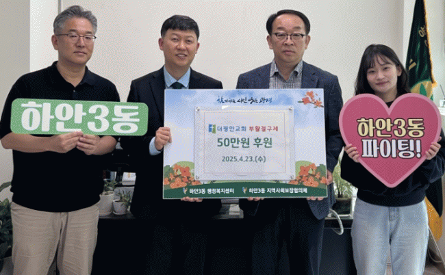 [»çȸ] ´õÆò¾È±³È¸, ºÎȰÀý ¸Â¾Æ ±¤¸í½Ã ÇϾÈ3µ¿ Ãë¾à°èÃþ À§ÇØ Çå±Ý 50¸¸ ¿ø ÈÄ¿ø |2025. 04.24