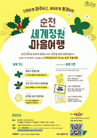 [»çȸ] '¼øÃµ ¼¼°èÁ¤¿ø ¸¶À»¿©Çà' Âü°¡ÀÚ ¸ðÁý |2025. 04.24