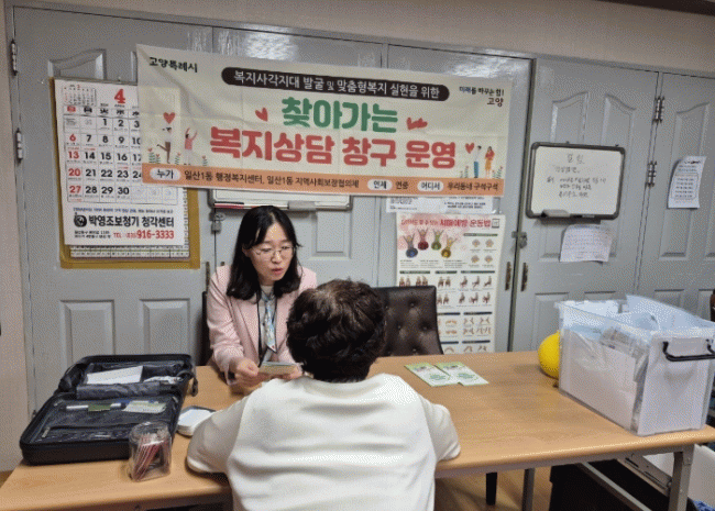 [NWS¹æ¼Û=Çѽ¸ñ ±âÀÚ]°í¾çƯ·Ê½Ã Àϻ꼭±¸ ÀÏ»ê1µ¿Àº Áö³­ 23ÀÏ ¿¡À̽º 10Â÷ °æ·Î´ç¿¡¼­ Àϻ꼭±¸º¸°Ç¼Ò¿Í Çù·ÂÇÑ¡®Ã£¾Æ°¡´Â º¹Áö»ó´ã¼Ò¡¯¸¦ ¿î¿µÇß´Ù. º¹Áö»ó´ã¼Ò´Â À̵¿ÀÌ ºÒÆíÇÑ ¾î¸£½ÅµéÀÌ º¹Áö ¹× °Ç°­¼­ºñ½º¸¦ ¼Õ½±°Ô ÀÌ¿ëÇÒ ¼ö¡¦