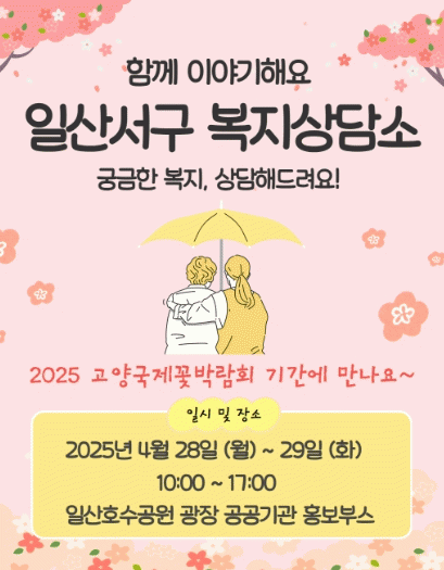 [NWS¹æ¼Û=Çѽ¸ñ ±âÀÚ]°í¾çƯ·Ê½Ã Àϻ꼭±¸´Â ¿À´Â 4¿ù 28ÀϺÎÅÍ 29ÀϱîÁö ÀÌÆ²°£, 2025°í¾ç±¹Á¦²É¹Ú¶÷ȸ°¡ ¿­¸®´Â ÀÏ»êÈ£¼ö°ø¿ø¿¡¼­ º¹Áö»ó´ã¼Ò¸¦ ¿î¿µÇØ ¹æ¹®°´µé¿¡°Ô ¸ÂÃãÇü º¹ÁöÁ¤º¸¸¦ Á¦°øÇÑ´Ù°í ¹àÇû´Ù. º¹Áö»ó´ã¼Ò´Â ¿ÀÀü 10½ÃºÎ¡¦