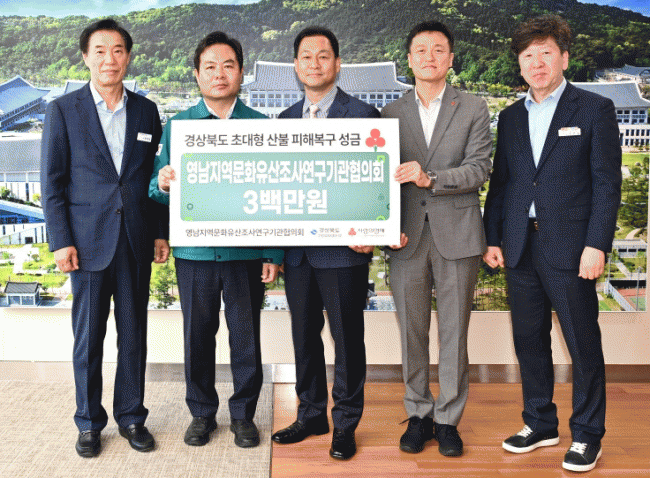 [NWS¹æ¼Û=Çѽ¸ñ ±âÀÚ](»ç)Çѱ¹¹®È­À¯»êÇùȸ¿Í ¿µ³²Áö¿ª¹®È­À¯»êÁ¶»ç¿¬±¸±â°üÇùÀÇȸ°¡ 24ÀÏ °æºÏµµÃ»À» ¹æ¹®ÇØ »êºÒ ÇÇÇØº¹±¸¸¦ À§ÇÑ ¼º±Ý 800¸¸¿ø(Çѹ®Çù 500¸¸¿ø, ¿µ¹®Çù 300¸¸¿ø)À» Àü´ÞÇß´Ù. À̳¯ ¼º±ÝÀº ÃÊ´ëÇü »êºÒ·Î Å« ÇÇÇØ¸¦ ¡¦