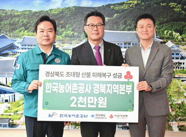 [NWS¹æ¼Û=Çѽ¸ñ ±âÀÚ]Çѱ¹³ó¾îÃ̰ø»ç °æºÏÁö¿ªº»ºÎ°¡ 24ÀÏ °æºÏµµÃ»À» ¹æ¹®ÇØ, °æºÏÁö¿ª »êºÒ ÇÇÇØ ÀÌÀç¹ÎÀ» µ½±â À§ÇÑ ¼º±Ý 2,000¸¸¿øÀ» Àü´ÞÇß´Ù. À̹ø ¼º±ÝÀº Çѱ¹³ó¾îÃ̰ø»ç °æºÏÁö¿ªº»ºÎ ÀÓÁ÷¿øÀÇ ÀÚ¹ßÀûÀÎ Âü¿©·Î ¸¶·ÃÇßÀ¸¸ç, °æ¡¦