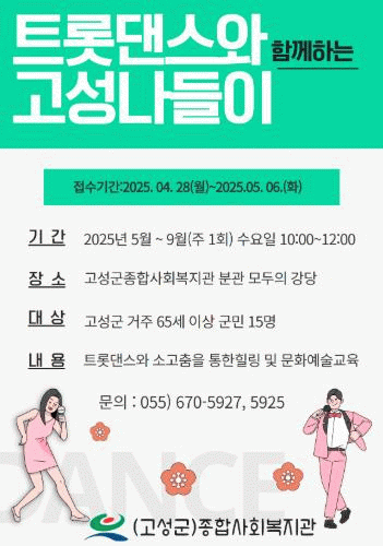 [NWS¹æ¼Û=Çѽ¸ñ ±âÀÚ]°í¼º±ºÀÌ ¿î¿µÇÏ´Â °í¼º±ºÁ¾ÇÕ»çȸº¹Áö°ü¿¡¼­´Â Áö¿ª ¾î¸£½ÅµéÀÇ ¹®È­¿¹¼ú ÇâÀ¯ ±âȸ È®´ë ¹× °Ç°­ÇÑ ¿©°¡»ýȰ Áö¿øÀ» À§ÇØ 2025³â ½Å±Ô ¹®È­È°µ¿ ÇÁ·Î±×·¥ ¡®Æ®·Ô´í½º¿Í ÇÔ²²ÇÏ´Â °í¼º³ªµéÀÌ¡¯¸¦ ¿î¿µÇÑ´Ù. À̹ø ¡¦