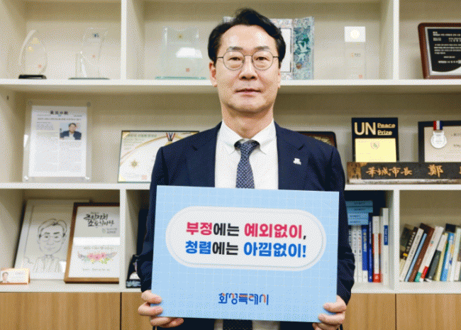 [NWS¹æ¼Û=Çѽ¸ñ ±âÀÚ]È­¼ºÆ¯·Ê½Ã°¡ 24ÀÏ ½Ã °øÁ÷ÀÚ°¡ Âü¿©ÇÏ´Â ¡®Ã»·Å ÀÌÀ½ 縰Áö¡¯¸¦ ½ÃÀÛÇß´Ù. ¡®Ã»·Å ÀÌÀ½ 縰Áö¡¯´Â ½ÃÀå, Á¦1?2ºÎ½ÃÀå, ±âȹÁ¶Á¤½ÇÀå µî °íÀ§°øÁ÷ÀÚ°¡ ¡®Ã»·Å ¸Þ½ÃÁö¡¯¸¦ ÅëÇØ û·Å ½Çõ ÀÇÁö¸¦ Àü´ÞÇÔÀ¸·Î½á, °ø¡¦