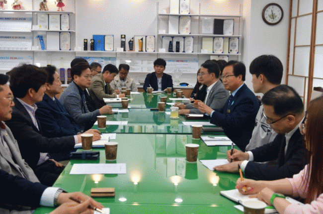 [NWS¹æ¼Û=Çѽ¸ñ ±âÀÚ]¿ÏÁÖ±ºÀÇȸ ±èÀçõ ºÎÀÇÀåÀº 23ÀÏ ¿ÏÁÖ±ºÃ» 4Ãþ Àü·«È¸Àǽǿ¡¼­ Áö¿ª Á¶´Þ¾÷ü °ü°èÀÚµé°ú °£´ãȸ¸¦ °®°í, Áö¿ª±â¾÷ÀÇ Á¶´Þ½ÃÀå ÁøÀÔ È®´ë ¹× »ó»ý ¹æ¾ÈÀ» ³íÀÇÇß´Ù. À̹ø °£´ãȸ¿¡´Â ±èÀçõ ºÎÀÇÀåÀ» ºñ·ÔÇØ À¯Èñ¡¦