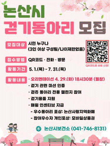 [NWS¹æ¼Û=Çѽ¸ñ ±âÀÚ] ³í»ê½Ã°¡ ½Ã¹Î °Ç°­ÁõÁø°ú °È±â ¹®È­ È®»êÀ» À§ÇÑ¡®ºñ´ë¸é °È±âµ¿¾Æ¸®¡¯¸¦ ¿î¿µÇÑ´Ù. À̹ø ÇÁ·Î±×·¥Àº ½Ã¹ÎÀÇ ÀÚ¹ßÀûÀÎ Âü¿©¸¦ ±â¹ÝÀ¸·Î ÇÑ °Ç°­½Çõ Ȱµ¿À¸·Î, ¿À´Â 5¿ùºÎÅÍ 7¿ù±îÁö 3°³¿ù °£ ÁøÇàµÈ´Ù. 3ÀÎ ¡¦