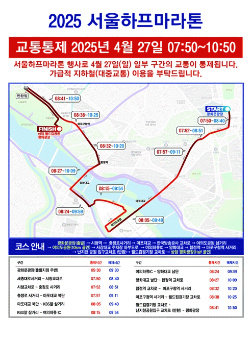 [½ºÆ÷Ã÷] ¼­¿ï½Ã, 4¿ù 27ÀÏ ¼­¿ïÇÏÇÁ¸¶¶óÅæ¡¦¼­¿ï µµ½É ±³Åë ÀϺΠ±¸°£ ¼øÂ÷ ÅëÁ¦ |2025. 04.24
