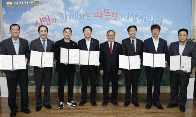[NWS¹æ¼Û=Çѽ¸ñ ±âÀÚ]¼­»ê½ÃÀÇȸ°¡ 2024ȸ°è¿¬µµ °á»ê°Ë»çÀ§¿øÀ» À§ÃËÇϰí 20Àϰ£ÀÇ °á»ê°Ë»ç Ȱµ¿¿¡ µ¹ÀÔÇß´Ù. Á¶µ¿½Ä ÀÇÀåÀº 24ÀÏ ÀÇÀå½Ç¿¡¼­ ´ëÇ¥À§¿ø ±è¿ë°æ ÀÇ¿øÀ» ºñ·ÔÇÑ 7¸íÀÇ °á»ê°Ë»çÀ§¿ø¿¡°Ô À§ÃËÀåÀ» ¼ö¿©ÇÏ°í ²Ä²ÄÇÑ °Ë»ç ¡¦