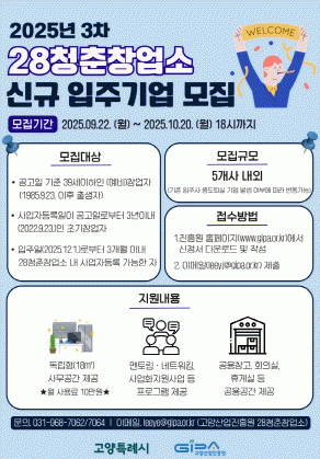 [°æÁ¦] °í¾ç»ê¾÷ÁøÈï¿ø, ¡®28ûÃáâ¾÷¼Ò¡¯Ã»³â â¾÷±â¾÷ ¸ðÁý |2025. 09.23