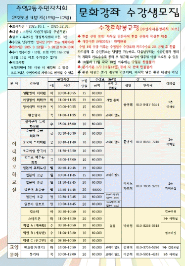 [»çȸ] °í¾ç½Ã ÁÖ¿±2µ¿, ÁÖ¹ÎÀÚÄ¡¼¾ÅÍ 4ºÐ±â ¹®È­°­Á Á¢¼ö ½ÃÀÛ |2025. 09.23