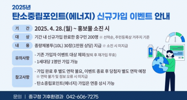 [»çȸ] ´ëÀü Áß±¸, ź¼ÒÁ߸³Æ÷ÀÎÆ®(¿¡³ÊÁö) ½Å±Ô°¡ÀÔ À̺¥Æ® ½Ç½Ã |2025. 04.24