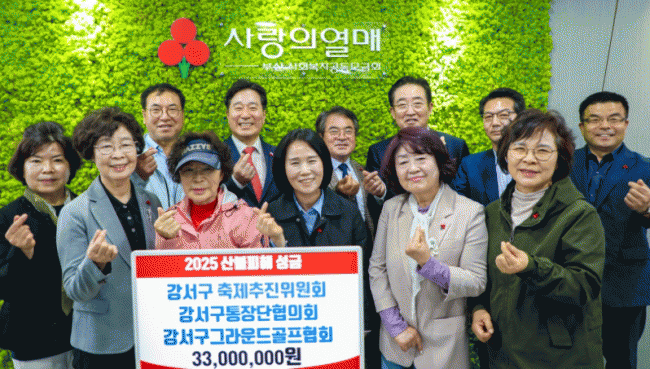 [NWS¹æ¼Û=Çѽ¸ñ ±âÀÚ]ºÎ»ê °­¼­±¸ ÃàÁ¦À§¿øÈ¸(À§¿øÀå À̵¿Çö)´Â °­¼­±¸ ÅëÀå´ÜÇùÀÇȸ(ȸÀå ÀÌÀç°ï), °­¼­±¸ ±×¶ó¿îµå°ñÇÁÇùȸ(ȸÀå ÀÌÀç°ï)¿Í ÇÔ²², ºÎ»ê½Ã»çȸ°øµ¿¸ð±Ýȸ¿¡ °æºÏ ÀǼº ´ëÇü »êºÒ ÇÇÇØ ÀÌÀç¹Î Áö¿øÀ» À§ÇÑ ¼º±Ý 3,300¸¸¿ø¡¦