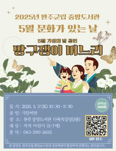 [NWS¹æ¼Û=Çѽ¸ñ ±âÀÚ]¿ÏÁÖ±º Áß¾Óµµ¼­°üÀÌ 5¿ù °¡Á¤ÀÇ ´ÞÀ» ¸Â¾Æ, ¾î¸°ÀÌ¿Í °¡Á·µéÀÌ µµ¼­°ü¿¡¼­ ÇÔ²² Áñ±æ ¼ö ÀÖµµ·Ï ¹®È­°¡ ÀÖ´Â ³¯°ú ¿¬°èÇØ ÀÎÇü±Ø°ú ³¶µ¶°ø¿¬À» ¿¬´Ù. ¿ì¼±, 5¿ù 17ÀÏ¿¡´Â °¡Á·»ç¶û Ç»ÀüÀÎÇü±Ø '¹æ±¸ÀïÀÌ ¸ç´À¸®'¡¦