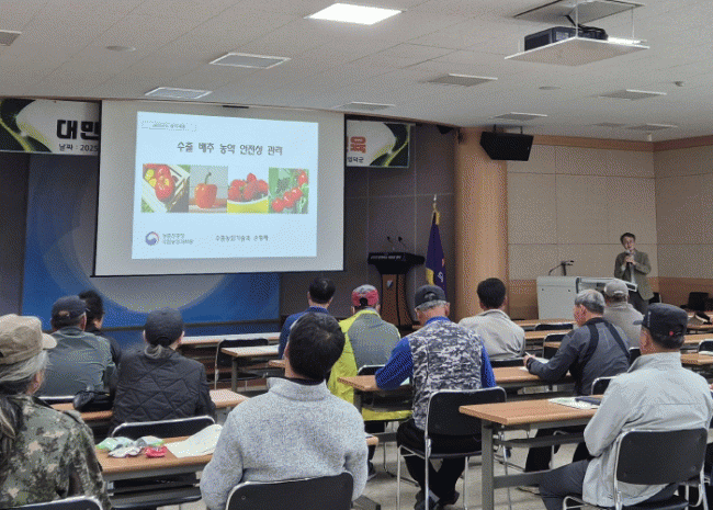 [NWS¹æ¼Û=Çѽ¸ñ ±âÀÚ]¿µ´ö±ºÀº ¼öÃâ ¹èÃßÀÇ »óǰ¼ºÀ» Çâ»óÇϰí Àç¹è ³ó°¡ÀÇ °æÀï·ÂÀ» °­È­Çϱâ À§ÇØ Áö³­ 23ÀÏ ³ó¾÷±â¼ú¼¾ÅÍ ´ë°­´ç¿¡¼­ ¡®´ë¸¸ ¼öÃâ ¹èÃß ³ó¾à ¾ÈÀü »ç¿ë ±³À°¡¯À» ÁøÇàÇß´Ù. À̳¯ ±³À°¿£ ´ë¸¸ ¼öÃâ¿ëÀ¸·Î »çÀü µî·ÏµÈ¡¦