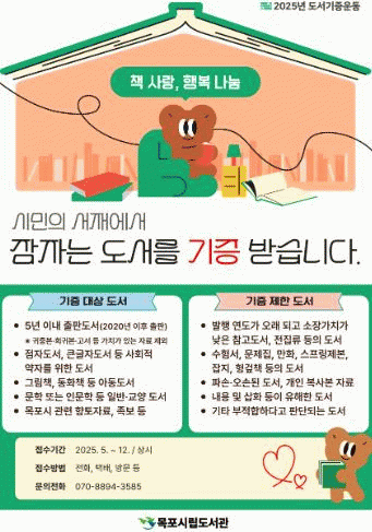 [»çȸ] ¸ñÆ÷½Ã¸³µµ¼­°ü,¡®Ã¥ »ç¶û, Çູ ³ª´®¡¯µµ¼­ ±âÁõ ¿îµ¿ Àü°³ |2025. 04.24
