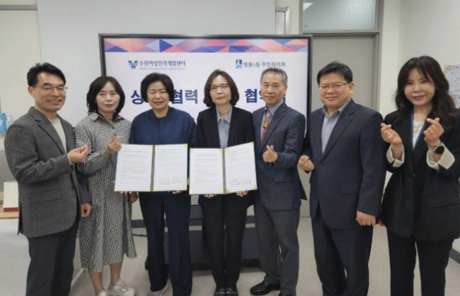 [NWS¹æ¼Û=Çѽ¸ñ ±âÀÚ]¼ö¿ø½Ã ¿µÅ뱸 ¿µÅë1µ¿ ÁÖ¹ÎÀÚġȸ´Â Áö³­ 23ÀÏ ¼ö¿ø¿©¼ºÀη°³¹ß¼¾ÅÍ¿Í ¾÷¹«Çù¾àÀ» ü°áÇϰí, ¿µÅë1µ¿ ź¼ÒÁ߸³ ¸¶À»¸¸µé±â ½ÇÇöÀ» À§ÇÑ Çù·Âü°è¸¦ ±¸ÃàÇϱâ·Î Çß´Ù. À̳¯ Çù¾à½Ä¿¡´Â ¿µÅë1µ¿ ÁÖ¹ÎÀÚġȸÀå, ¼ö¿ø¡¦