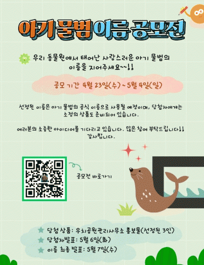 [NWS¹æ¼Û=Çѽ¸ñ ±âÀÚ]±¤ÁÖ±¤¿ª½Ã ¿ìÄ¡°ø¿ø°ü¸®»ç¹«¼Ò´Â ¿ìÄ¡µ¿¹°¿ø¿¡¼­ ž ¾Æ±â ¹°¹ü À̸§ °ø¸ðÀüÀ» ¿À´Â 5¿ù4ÀϱîÁö ÁøÇàÇÑ´Ù. ¾Æ±â ¹°¹üÀº ÀÜÁ¡¹ÚÀ̹°¹ü ¾ÏÄÆÀ¸·Î, žÀÚ¸¶ÀÚ ¾î¹ÌÀÇ º¸»ìÇËÀ» ¹ÞÁö ¸øÇÏ°í »çÀ°»çÀÇ ¼Õ¿¡ ÀÚ¶ú¡¦