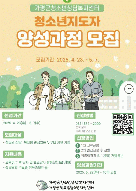 [»çȸ] °¡Æò±º, û¼Ò³âÁöµµÀÚ ¾ç¼º°úÁ¤ Âü°¡ÀÚ ¸ðÁý |2025. 04.24
