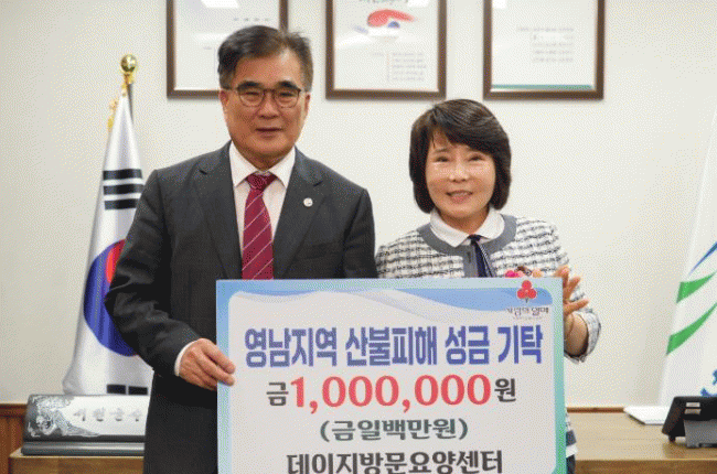 [»çȸ] ¼­Ãµ±º µ¥ÀÌÁö°¡Á¤¹æ¹®¿ä¾ç¼¾ÅÍ, ¿µ³² »êºÒ ÇÇÇØ ¼º±Ý 100¸¸¿ø ±âŹ |2025. 04.24