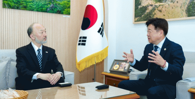 [NWS¹æ¼Û=Çѽ¸ñ ±âÀÚ]¿À¿µÈÆ Á¦ÁÖÆ¯º°ÀÚÄ¡µµÁö»ç´Â 23ÀÏ µµÃ» Áý¹«½Ç¿¡¼­ ÀÌÄÉ´Ù ¿ä¿ÀÀÌÄ¡(ò®ï£åÇìé) ÁÖÁ¦ÁÖÀϺ»±¹ÃÑ¿µ»ç°ü ½ÅÀÓ ÃÑ¿µ»ç¿Í ¸¸³ª Á¦ÁÖ¿Í ÀϺ» °£ Áö¹æ¿Ü±³ È®´ë ¹æ¾ÈÀ» ³íÀÇÇß´Ù. À̳¯ ¸é´ãÀº Áö³­ 21ÀÏ ºÎÀÓÇÑ ÀÌÄÉ´Ù ¡¦