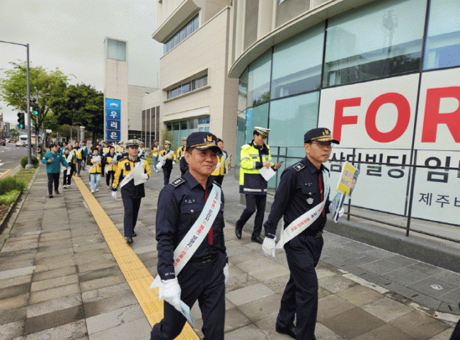 [NWS¹æ¼Û=Çѽ¸ñ ±âÀÚ]Á¦ÁÖÆ¯º°ÀÚÄ¡µµ ÀÚÄ¡°æÂû´ÜÀº 23ÀÏ ¿ÀÀü ¼­±ÍÆ÷½Ã ÀÏÈ£±¤Àå ÀÏ´ë ±³Â÷·Î¿¡¼­ ±³Å빮ȭÁö¼ö Çâ»óÀ» À§ÇÑ ±³Åë¾ÈÀü Ä·ÆäÀÎÀ» ½Ç½ÃÇß´Ù. À̹ø Ä·ÆäÀο¡´Â ÀÚÄ¡°æÂû´Ü ¼­±ÍÆ÷Áö¿ª°æÂû´ë¿Í ¼­±ÍÆ÷½Ã, ¼­±ÍÆ÷°æÂû¼­, ÁֹΡ¦
