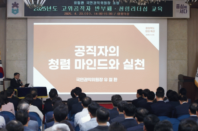 [NWS¹æ¼Û=Çѽ¸ñ ±âÀÚ] ÃæºÏµµ´Â 23ÀÏ ¿ÀÈÄ 2½Ã, µµÃ» ´ëȸÀǽǿ¡¼­ 4±Þ ÀÌ»ó °£ºÎ °ø¹«¿ø ¹× ÃâÀÚ?Ã⿬±â°üÀå µî °íÀ§°øÁ÷ÀÚ 140¿© ¸íÀ» ´ë»óÀ¸·Î ¡®¹ÝºÎÆÐ¡¤Ã»·Å¸®´õ½Ê ±³À°¡¯À» °³ÃÖÇß´Ù°í ¹àÇû´Ù. À̹ø ±³À°Àº ÃæºÏµµ°¡ °íÀ§°øÁ÷ÀÚ¡¦