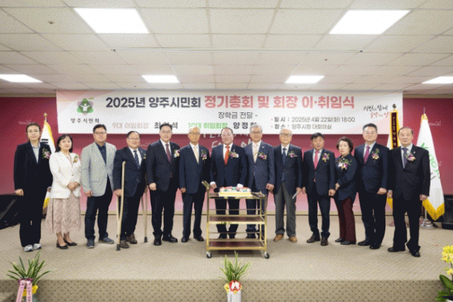 [NWS¹æ¼Û=Çѽ¸ñ ±âÀÚ]¾çÁÖ½ÃÀÇ ´ëÇ¥ ½Ã¹Î´ÜüÀÎ ¾çÁֽùÎȸ°¡ Áö³­ 22ÀÏ ¾çÁÖ½Ãû ÁöÇÏ ´ëȸÀǽǿ¡¼­ ¡®2025³â Á¤±âÃÑȸ ¹× Á¦9¡¤10´ë ȸÀå ÀÌ¡¤ÃëÀӽġ¯À» ¿­°í »õ·Î¿î Ãâ¹ßÀ» ¾Ë·È´Ù. À̳¯ Çà»ç¿¡´Â °­¼öÇö ¾çÁÖ½ÃÀå, À±Ã¢Ã¶ ¾çÁÖ½ÃÀÇ¡¦