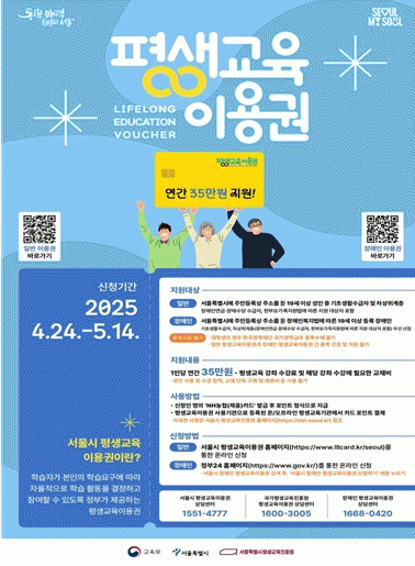 [»çȸ] ¼­¿ï½Ã, ±³À°¼Ò¿Ü°èÃþ 1¸¸ 8õ¿©¸í¿¡ ¿¬ 35¸¸¿ø Æò»ý±³À°ÀÌ¿ë±Ç Áö±Þ |2025. 04.23
