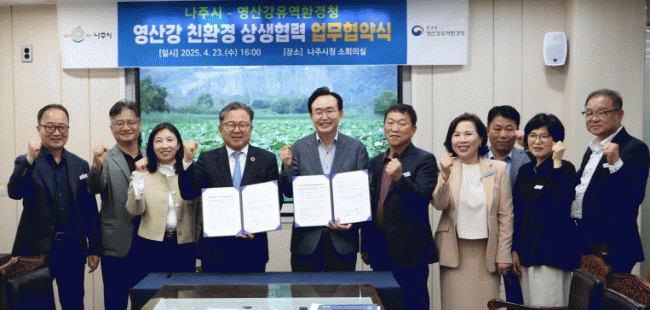 [NWS¹æ¼Û=ÇãÀº¼­ ±âÀÚ]Àü¶ó³²µµ ³ªÁÖ½Ã¿Í ¿µ»ê°­À¯¿ªÈ¯°æÃ»ÀÌ ¡®¿µ»ê°­ ¸£³×»ó½º ½ÇÇö¡¯À̶ó´Â °øµ¿ÀÇ ¸ñÇ¥ ¾Æ·¡ »ó»ý°ú Çù·Âü°è¸¦ ±¸ÃàÇß´Ù. ³ªÁֽô 23ÀÏ ¿µ»ê°­À¯¿ªÈ¯°æÃ»°ú ¡®¿µ»ê°­ ģȯ°æ »ó»ýÇù·Â¡¯À» À§ÇÑ ¾÷¹«Çù¾àÀ» ü°áÇß¡¦