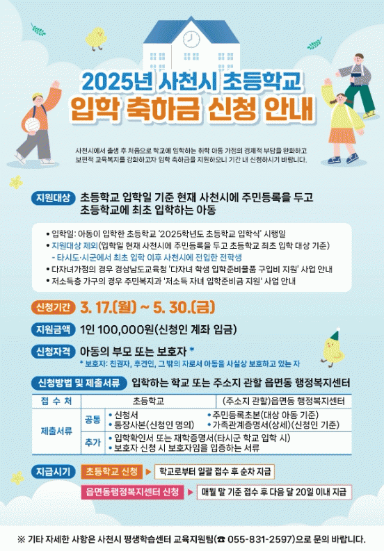 [NWS¹æ¼Û=Çѽ¸ñ ±âÀÚ]»çõ½Ã´Â ¾ÆÀ̵éÀÌ Èñ¸ÁÂù ù°ÉÀ½À» ³»µó´Â ÃʵîÇб³ ÀÔÇÐÀ» ÃàÇÏÇϰí ÇкθðÀÇ ±³À°ºñ ºÎ´ãÀ» °æ°¨Çϱâ À§ÇØ ¡®2025³â ÃʵîÇб³ ÀÔÇÐ ÃàÇÏ±Ý Áö¿ø¡¯ »ç¾÷À» ÃßÁøÇϰí ÀÖ´Ù. ÀÔÇÐÇÏ´Â Çб³ÀÇ ÀÔÇÐÀÏ ±âÁØ »çõ½Ã¿¡¡¦