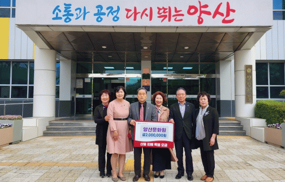[NWS¹æ¼Û=Çѽ¸ñ ±âÀÚ]¾ç»ê¹®È­¿ø(¿øÀå ¹ÚÀÎÁÖ)¿¡¼­ ÃÖ±Ù ¹ß»ýÇÑ ¿µ³²Áö¿ª »êºÒ·Î ÀÎÇÑ ÇÇÇØ º¹±¸¸¦ À§ÇØ 23ÀÏ °æ³²»çȸº¹Áö°øµ¿¸ð±Ýȸ Ưº°¸ð±Ý¿¡ 200¸¸¿øÀ» ±âºÎÇß´Ù. ¾ç»ê¹®È­¿øÀº ÇâÅä»ç¿¬±¸¼Ò, û¼Ò³â ¿ÀÄɽºÆ®¶ó µî 4°³ÀÇ ºÎ¼³±â¡¦