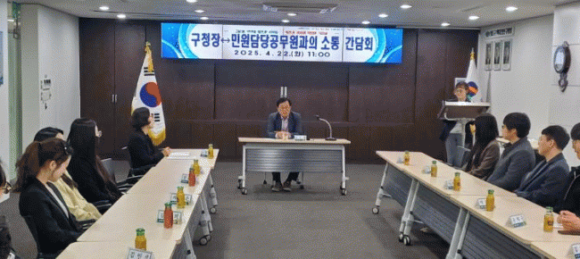 [NWS¹æ¼Û=Çѽ¸ñ ±âÀÚ] ºÎ»ê½Ã ¿µµµ±¸´Â Áö³­ 4¿ù 22ÀÏ ±¸Ã» ¹× µ¿ ÇàÁ¤º¹Áö¼¾ÅÍ ¹Î¿ø´ã´ç°ø¹«¿ø 17¸íÀ» ´ë»óÀ¸·Î ±¸Ã»Àå ÁÖÀçÀÇ ¼ÒÅë °£´ãȸ¸¦ °³ÃÖÇß´Ù. À̹ø °£´ãȸ´Â ¹Î¿ø ÇöÀå ÃÖÀϼ±¿¡¼­ °Þ´Â ½Ç¹«ÀÚµéÀÇ ÇöÀå °æÇè°ú °íÃæÀ» Á÷Á¢¡¦