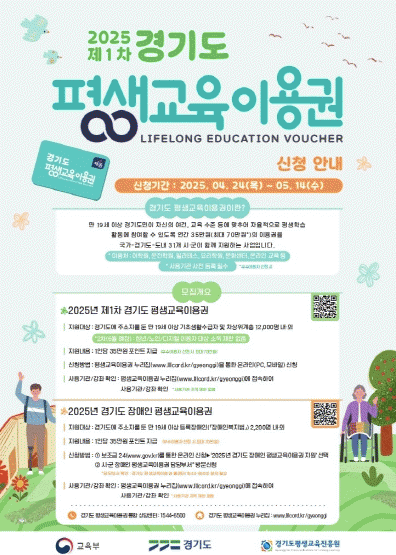 [NWS¹æ¼Û=Çѽ¸ñ ±âÀÚ]°æ±âµµ¿Í °æ±âµµÆò»ý±³À°ÁøÈï¿øÀº 4¿ù 24ÀϺÎÅÍ ¡®2025³â Á¦1Â÷ °æ±âµµ Æò»ý±³À°ÀÌ¿ë±Ç¡¯ ½ÅûÀÚ¸¦ ¸ðÁýÇÑ´Ù. ¡®Æò»ý±³À°ÀÌ¿ë±Ç¡¯Àº »çȸ?°æÁ¦Àû ¿©°Ç¿¡ µû¸¥ ÇнÀ °ÝÂ÷¸¦ ÇØ¼ÒÇϰí, µµ¹ÎÀÇ Æò»ýÇнÀ Âü¿© ±âȸ¸¦ ¡¦