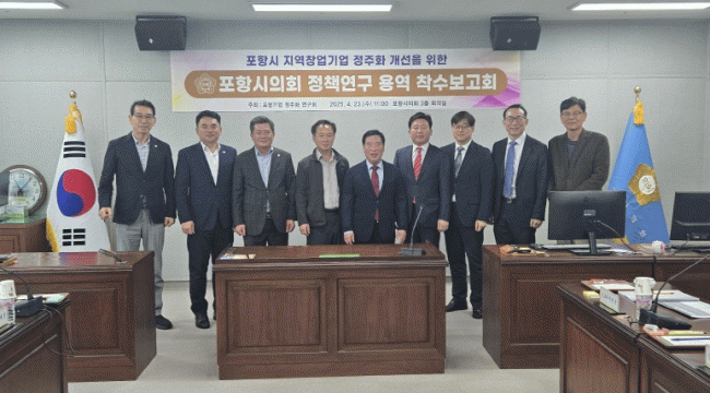 [NWS¹æ¼Û=Çѽ¸ñ ±âÀÚ]Æ÷Ç×½ÃÀÇȸ ÀÇ¿ø¿¬±¸´Üü¡®Æ÷Ç×±â¾÷ Á¤ÁÖÈ­ ¿¬±¸È¸¡¯´Â 23ÀÏ ¿ÀÀü ½ÃÀÇȸ¿¡¼­¡°Áö¿ª â¾÷±â¾÷ Á¤ÁÖÈ­¸¦ À§ÇÑ °³¼±¹æ¾È ¿¬±¸¡±¸¦ ÁÖÁ¦·Î ¿ë¿ª Âø¼öº¸°íȸ¸¦ °³ÃÖÇß´Ù. À̹ø Á¤Ã¥¿¬±¸´Â Áö¿ª ³» â¾÷±â¾÷ÀÇ ¾ÈÁ¤ÀûÀΡ¦