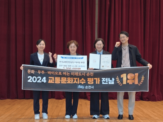 [NWS¹æ¼Û=Çѽ¸ñ ±âÀÚ]¼øÃµ½Ã´Â 23ÀÏ Çѱ¹±³Åë¾ÈÀü°ø´Ü »óÁÖ ±³Åë¾ÈÀüüÇè±³À°¼¾ÅÍ¿¡¼­ ¿­¸° ¡®2024³â ±³Å빮ȭÁö¼ö Æò°¡¡¯ ½Ã»ó½Ä¿¡¼­ Àü¶ó³²µµ ³» 1À§, Àü±¹ Àα¸ 30¸¸ ¹Ì¸¸ µµ½Ã Áß 2À§¸¦ Â÷ÁöÇØ Çѱ¹±³Åë¾ÈÀü°ø´Ü ÀÌ»çÀå ǥâÀ» ¹Þ¾Ò¡¦
