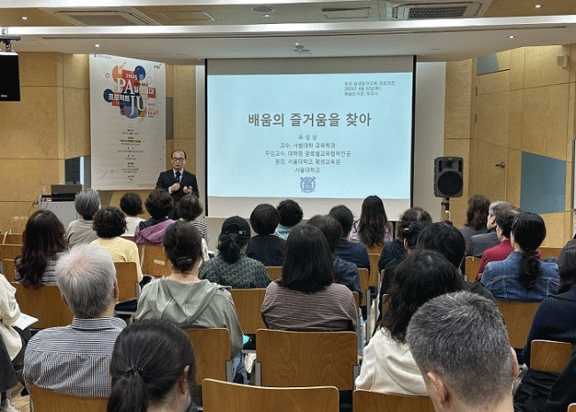 [NWS¹æ¼Û=Çѽ¸ñ ±âÀÚ]ÆÄÁֽà ¿îÁ¤2µ¿°ú ¼­¿ï´ë°¡ ¼ÕÀ» Àâ°í ÃßÁøÇØ ¿Â ¡®ÀÏ»ýÀϴ롯 Æò»ýÇнÀ ÇÁ·ÎÁ§Æ®°¡ Áö³­ 22ÀÏ ÇØ¼Öµµ¼­°ü 1Ãþ ¼Ò±ØÀå¿¡¼­ ù ¼ö¾÷À» °³°­ÇÏ¸ç º»°ÝÀûÀÎ Ãâ¹ßÀ» ¾Ë·È´Ù. À̹ø ù ¼ö¾÷¿¡´Â ¡®Áñ°Å¿î ¹è¿òÀÇ Á¶°Ç¡¯¡¦