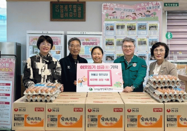 [NWS¹æ¼Û=Çѽ¸ñ ±âÀÚ]¿øºÒ±³ ÇԾȱ³´çÀº Áö³­ 22ÀÏ ¼Ò¿Ü°èÃþ ÀÌ¿ôÀ» À§ÇÑ µû¶æÇÑ ¸¶À½À» ´ã¾Æ °¡¾ßÀ¾ ÇàÁ¤º¹Áö¼¾ÅÍ¿¡ Á÷Á¢ ¹æ¹®ÇØ 40¸¸ ¿ø »ó´çÀÇ ½Äǰ(¶ó¸é 10¹Ú½º, °è¶õ 10ÆÇ)À» Àü´ÞÇß´Ù. À̹ø ½ÄǰÀº °ü³» Ãë¾à°èÃþ¿¡ µµ¿òÀ» ÁÖ°í¡¦