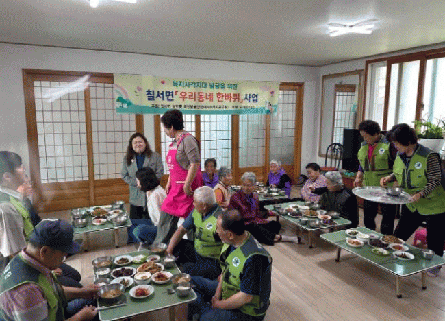 [NWS¹æ¼Û=Çѽ¸ñ ±âÀÚ] ÇԾȱº Ä¥¼­¸é¿¡¼­´Â 23ÀÏ À¯°è¸¶À» ȸ°ü¿¡¼­ ¸í¿¹»çȸº¹Áö°ø¹«¿ø°ú ÇÔ²²ÇÏ´Â ¡®¿ì¸®µ¿³× ÇѹÙÄû »ç¾÷¡¯À» ½Ç½ÃÇß´Ù°í ¹àÇû´Ù. ¡®¿ì¸® µ¿³× ÇѹÙÄû¡¯´Â Ä¥¼­¸é¿¡ ¼ÒÀçÇÑ ¼¼ÁøF&S¿¡¼­ ÈÄ¿øÇÏ´Â À½½ÄÀ» ¸í¿¹»çȸº¹¡¦