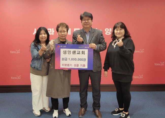 [NWS¹æ¼Û=Çѽ¸ñ ±âÀÚ]°æ±â ¾çÁֽà ¹é¼®À¾¿¡ À§Ä¡ÇÑ »ý¸í»ù±³È¸°¡ ¿ÃÇØµµ Áö¿ª»çȸ ³ª´®À» À̾´Ù. »ý¸í»ù±³È¸´Â 23ÀÏ ¹é¼®À¾ÇàÁ¤º¹Áö¼¾Å͸¦ ¹æ¹®ÇØ Àú¼ÒµæÃþ µî ¾î·Á¿î ÀÌ¿ôÀ» À§ÇØ »ç¿ëÇØ´Þ¶ó¸ç ¼º±Ý 100¸¸ ¿øÀ» ±âŹÇß´Ù. ¸Å³â Áö¿ª¡¦