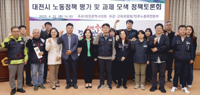 [NWS¹æ¼Û=Çѽ¸ñ ±âÀÚ]´ëÀü½ÃÀÇȸ°¡ ±è¹Î¼÷ ÀÇ¿ø(´õºÒ¾î¹ÎÁÖ´ç, ºñ·Ê)À» ÁÂÀåÀ¸·Î 22ÀÏ ÀÇȸ ¼ÒÅë½Ç¿¡¼­ ¡®´ëÀü½Ã ³ëµ¿Á¤Ã¥ Æò°¡ ¹× °úÁ¦ ¸ð»ö Á¤Ã¥Åä·Ðȸ¡¯¸¦ °³ÃÖÇß´Ù. À̹ø Åä·Ðȸ´Â ¼¼°è ³ëµ¿Àý(¸ÞÀ̵¥ÀÌ)À» ¾ÕµÎ°í ³ëµ¿ Á¸Áß°ú Áö¿ª¡¦