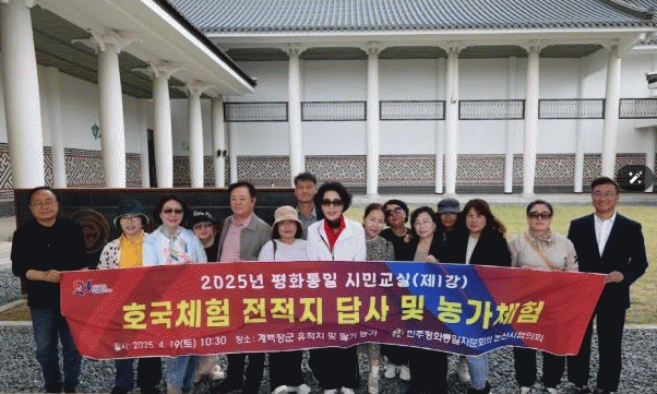[NWS¹æ¼Û=Çѽ¸ñ ±âÀÚ]¹ÎÁÖÆòÈ­ÅëÀÏÀÚ¹®È¸ÀÇ ³í»ê½ÃÇùÀÇȸ(ȸÀå ÀÌÁ¤È£)´Â Áö³­ 19ÀÏ ¡®2025³â ÆòÈ­ÅëÀÏ ½Ã¹Î±³½Ç¡¯ ÇÁ·Î±×·¥ÀÇ ÀÏȯÀ¸·Î È£±¹ ÀüÀûÁö ´ä»ç ¹× µþ±â³ó°¡ üÇèÀ» ÁøÇàÇß´Ù. À̹ø Çà»ç´Â Áö¿ª»çȸ ÅëÀÏȰµ¿ Ȱ¼ºÈ­¿Í ½Ã¹Î¡¦