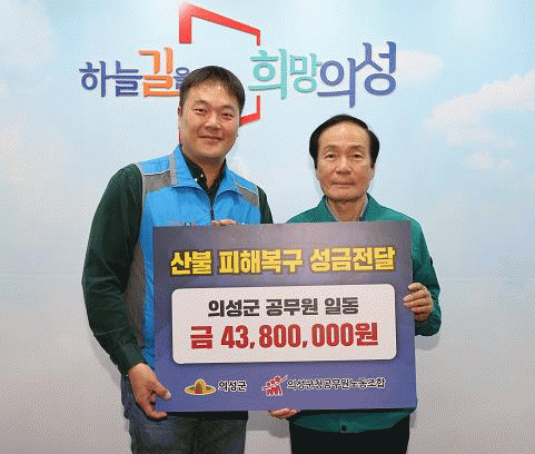[NWS¹æ¼Û=Çѽ¸ñ ±âÀÚ]ÀǼº±ºÀº ÃÖ±Ù »êºÒ·Î ÇÇÇØ¸¦ ÀÔÀº ÁֹεéÀÇ Á¶¼ÓÇÑ ÀÏ»ó º¹±Í¿Í Áö¿ª»çȸÀÇ ºü¸¥ ȸº¹À» ±â¿øÇϸç 4,380¸¸ ¿øÀÇ ¼º±ÝÀ» ±âŹÇß´Ù. À̹ø ¼º±ÝÀº ±èÁÖ¼ö ±º¼ö¸¦ ºñ·ÔÇÑ °£ºÎ°ø¹«¿øµéÀÌ ÀÚ¹ßÀûÀ¸·Î ¸ðÀº 2,380¸¸¿ø°ú¡¦